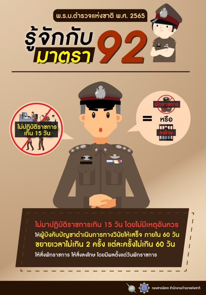 การดำเนินการทางวินัย ตาม พ.ร.บ.ตำรวจแห่งชาติ พ.ศ. 2565 มาตรา 51, 92 และ 125