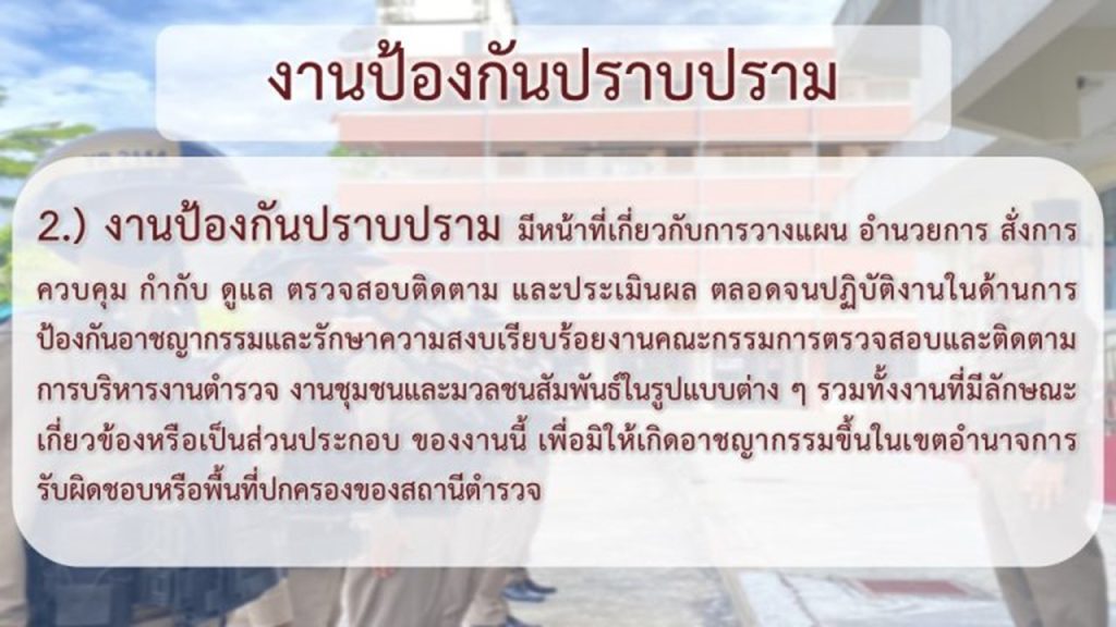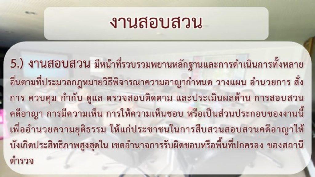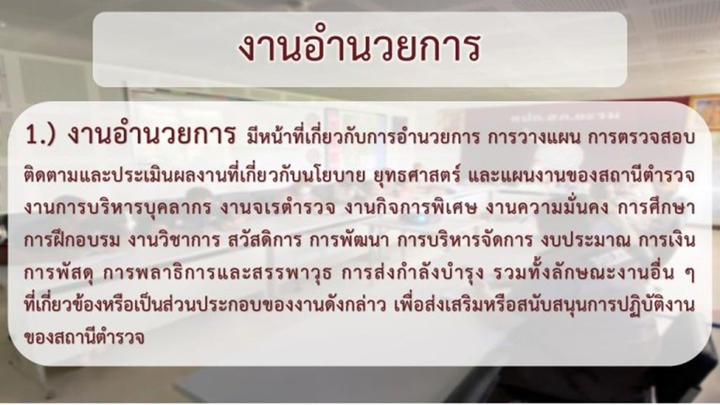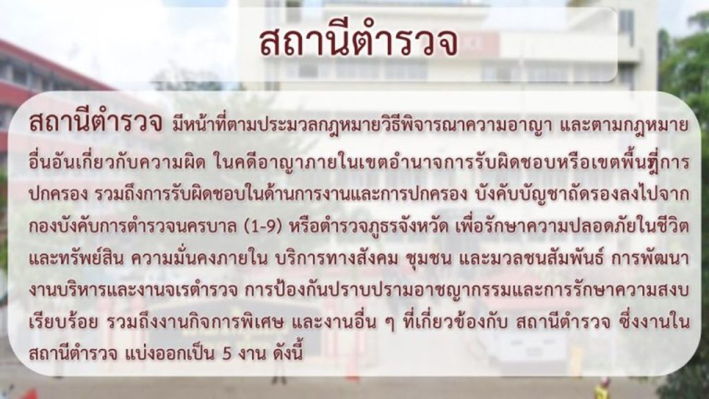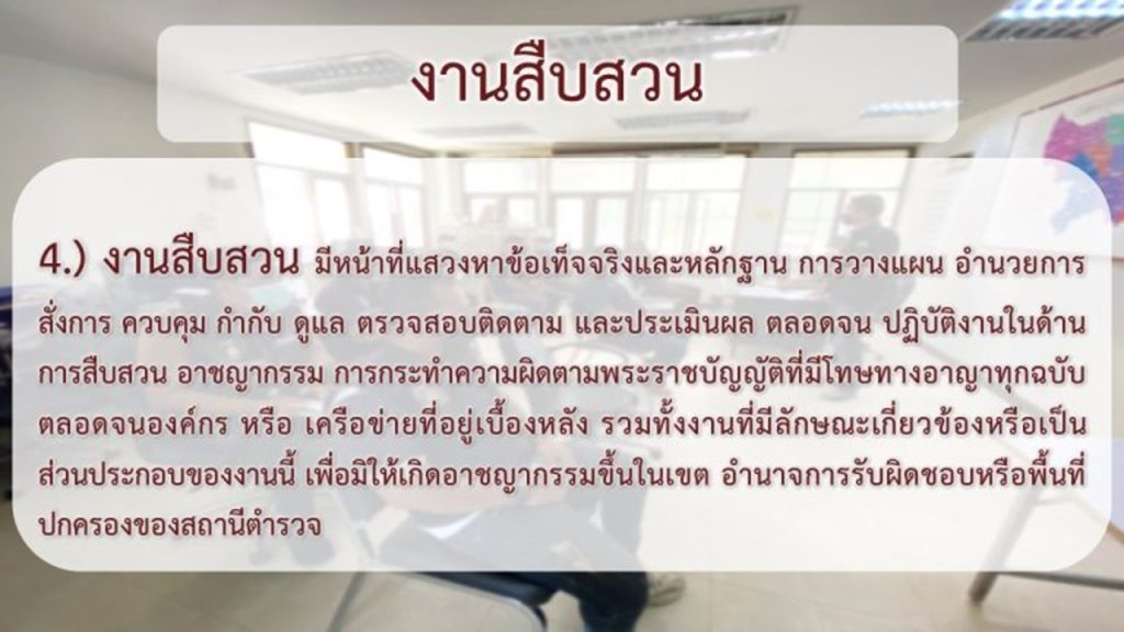 บทบาทภารกิจความรับผิดชอบของแต่ละสายงานภายในสถานีตำรวจ
