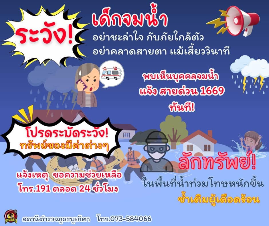 ประชาสัมพันธ์ #การรับมือช่วงน้ำท่วม #ประชาชนเดือดร้อน 28 พฤศจิกายน 2567 โดย buketa / ข่าวประชาสัมพันธ์,ข่าวฝากประชาสัมพันธ์,ไม่มีหมวดหมู่ สถานีตำรวจภูธรบูเก๊ะตา จำนวนคนดู: 1 FacebookFacebookXXLINELine