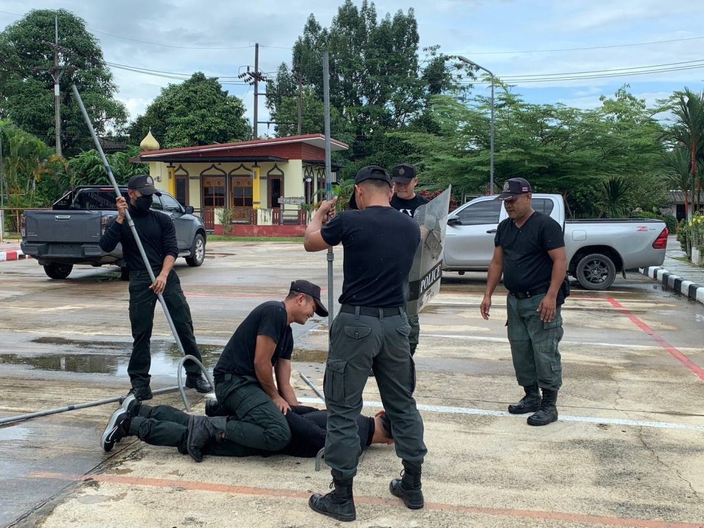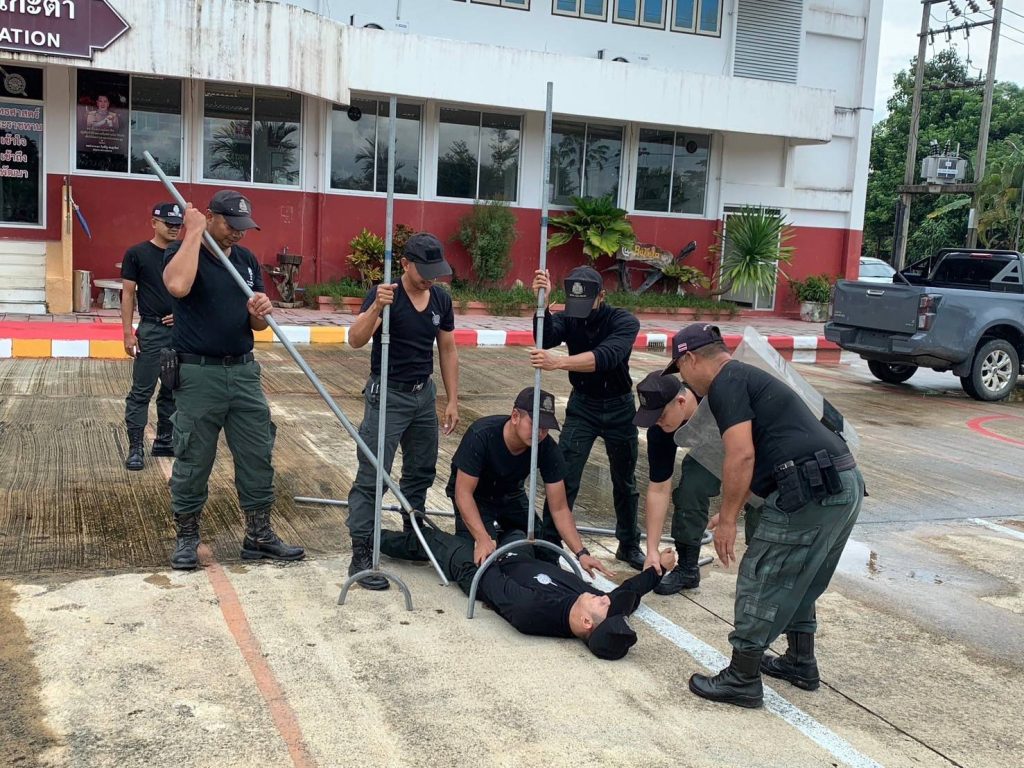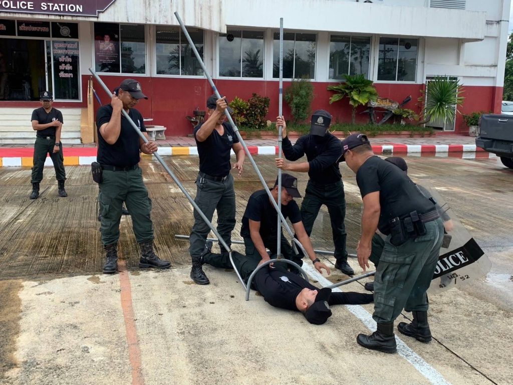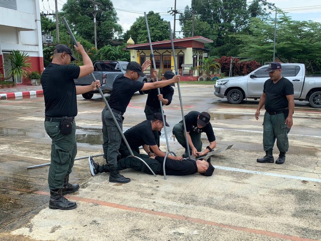 วันที่ 8 ต.ค.67 เวลา 14:30 น. ร.ต.อ.ยงยุธ บุญให้ รอง สวป.สภ.บูเก๊ะตา พร้อมด้วยข้าราชการตำรวจ สภ.บูเก๊ะตา ร่วมฝึกการใช้ไม้ง่ามระงับเหตุบุคคลคลุ้มคลั่ง ณ ลานฝึก สภ.บูเก๊ะตา โดยจำลองเหตุ กรณีได้รับแจ้งหรือพบบุคคลที่มีพฤติกรรมอันน่าจะเชื่อว่าบุคคลนั้นมีลักษณะผิดปกติทางจิต ซึ่งการสาธิตฝึกยุทธวิธีในครั้งนี้เพื่อให้เจ้าหน้าที่ที่เกี่ยวข้อง และชุดระงับเหตุ มีความเข้าใจในขั้นตอนยุทธวิธีในการปฏิบัติ เพื่อป้องกันไม่ให้เกิดข้อผิดพลาดขณะปฏิบัติหน้าที่ ทั้งนี้เพื่อสร้างความมั่นใจในความปลอดภัยในชีวิตและทรัพย์สินของประชาชน