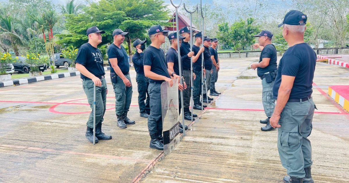 วันที่ 8 ต.ค.67 เวลา 14:30 น. ร.ต.อ.ยงยุธ บุญให้ รอง สวป.สภ.บูเก๊ะตา พร้อมด้วยข้าราชการตำรวจ สภ.บูเก๊ะตา ร่วมฝึกการใช้ไม้ง่ามระงับเหตุบุคคลคลุ้มคลั่ง ณ ลานฝึก สภ.บูเก๊ะตา โดยจำลองเหตุ กรณีได้รับแจ้งหรือพบบุคคลที่มีพฤติกรรมอันน่าจะเชื่อว่าบุคคลนั้นมีลักษณะผิดปกติทางจิต ซึ่งการสาธิตฝึกยุทธวิธีในครั้งนี้เพื่อให้เจ้าหน้าที่ที่เกี่ยวข้อง และชุดระงับเหตุ มีความเข้าใจในขั้นตอนยุทธวิธีในการปฏิบัติ เพื่อป้องกันไม่ให้เกิดข้อผิดพลาดขณะปฏิบัติหน้าที่ ทั้งนี้เพื่อสร้างความมั่นใจในความปลอดภัยในชีวิตและทรัพย์สินของประชาชน