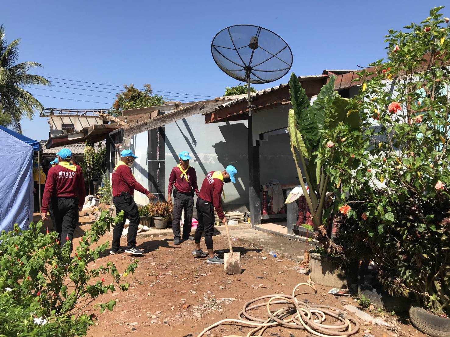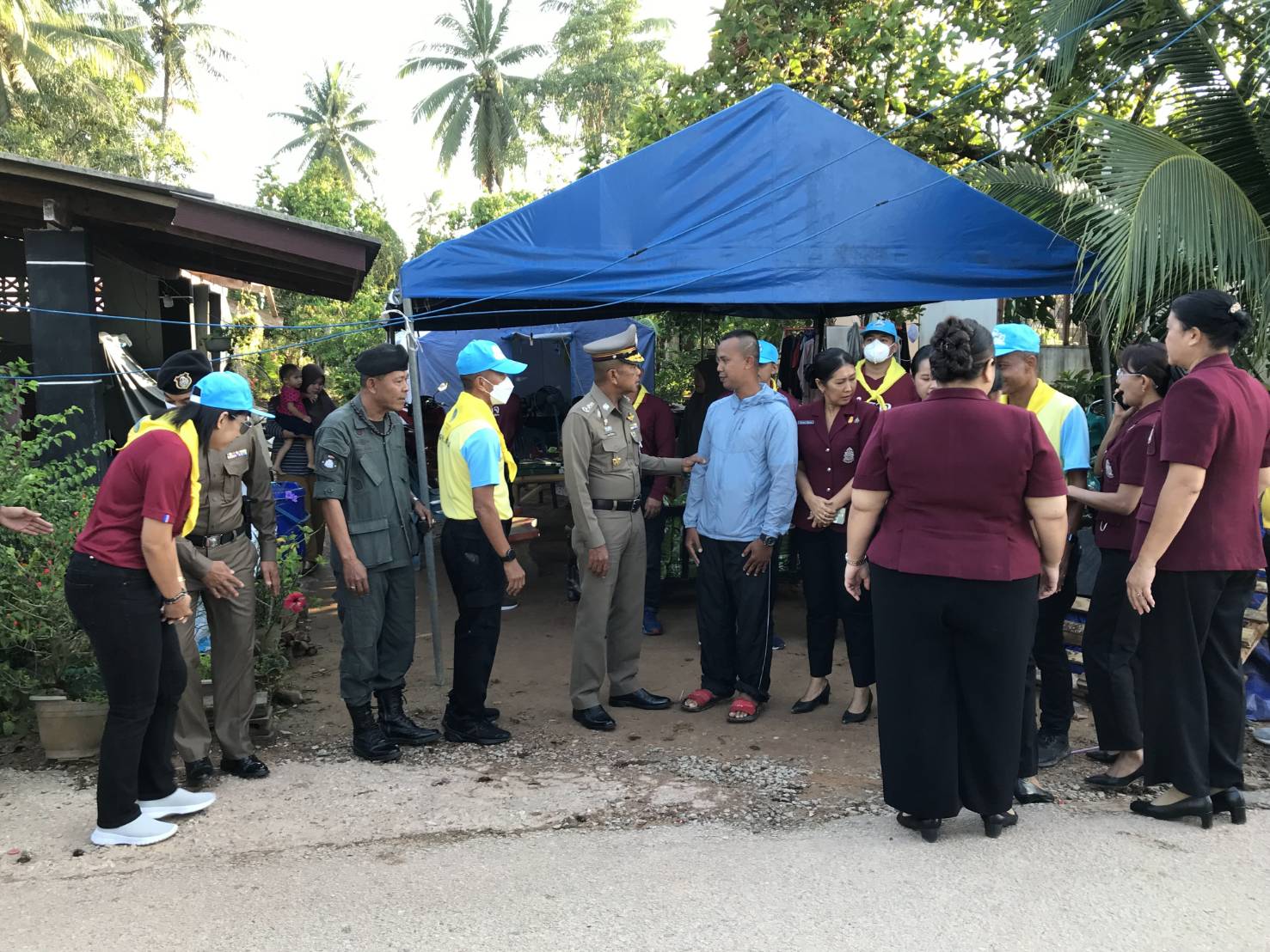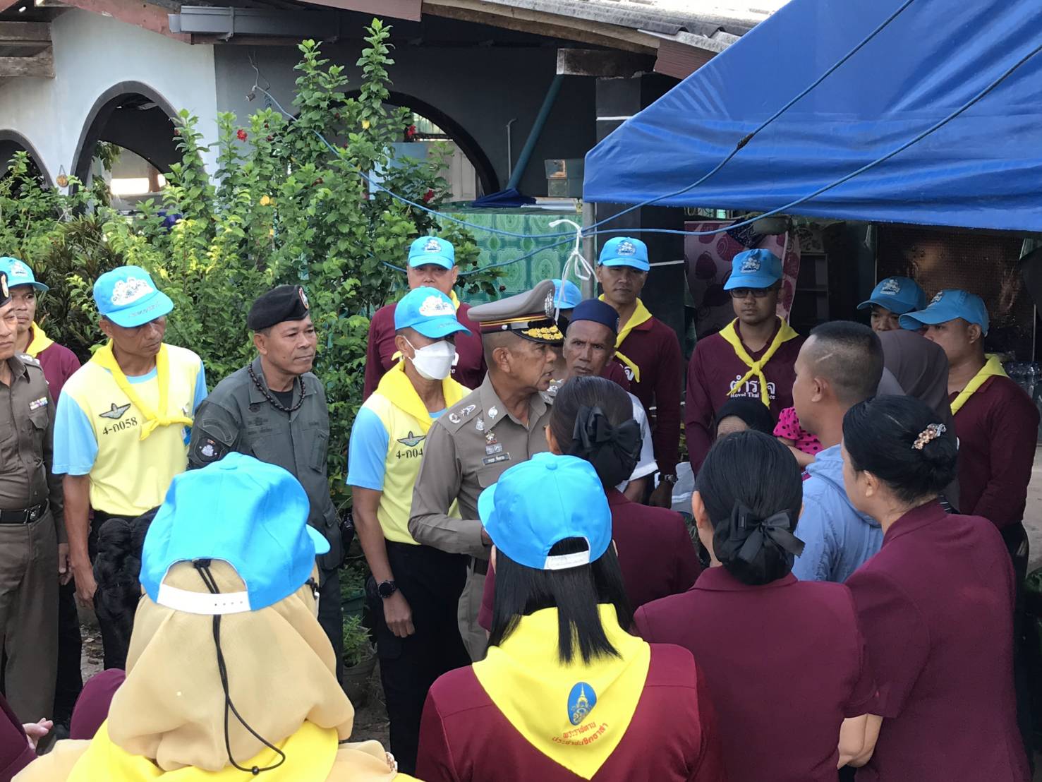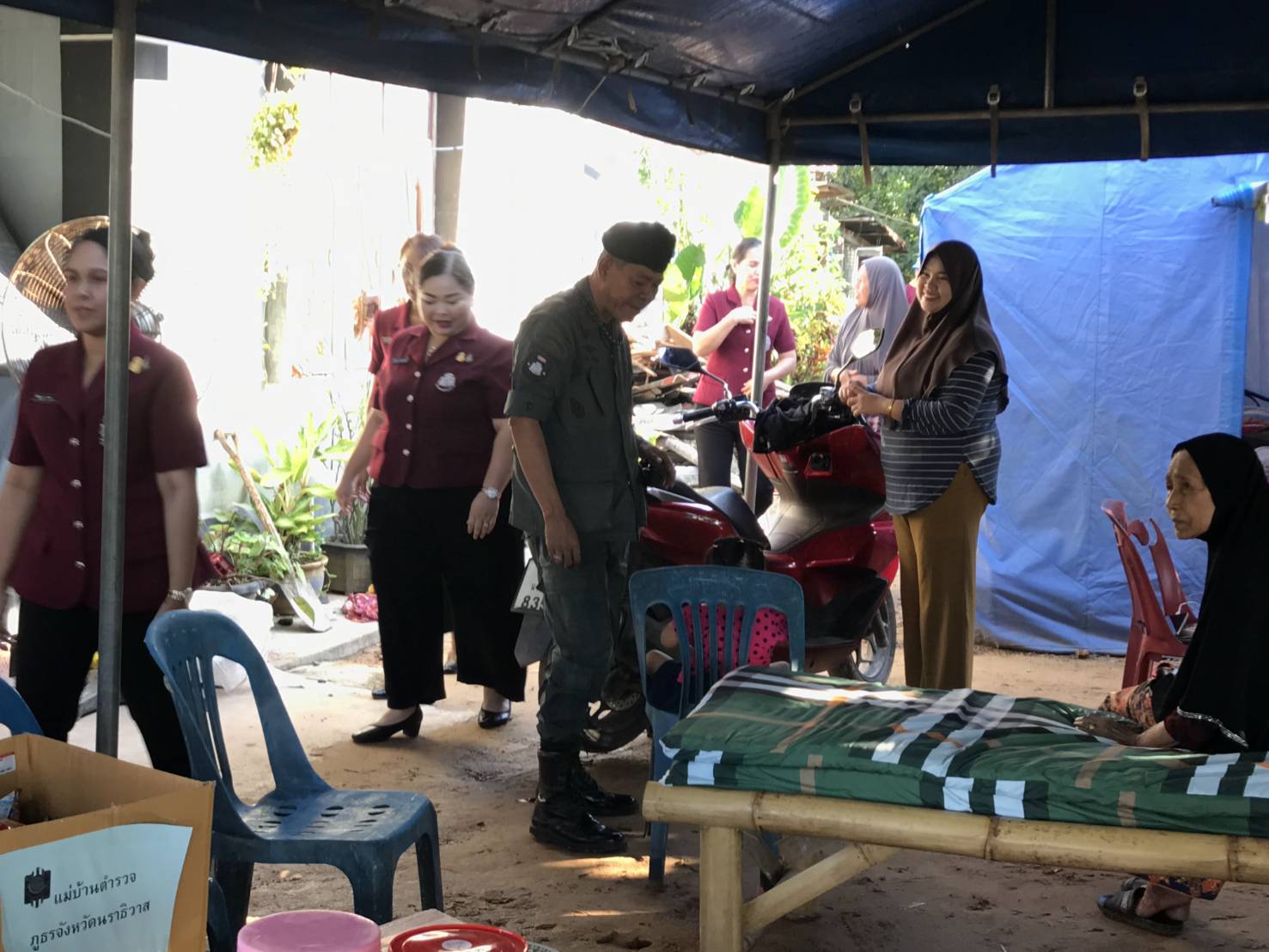 พ.ต.อ.ฉลอง เล็กน้อย ผกก.สภ.บูเก๊ะตา พร้อมข้าราชการตำรวจจิตอาสา สภ.บูเก๊ะตา ร่วมต้อนรับ พล.ต.ต.อนุรุธ อิ่มอาบ ผู้บังคับการตำรวจภูธรนราธิวาส ลงพื้นที่เยี่ยมเยือน ช่วยเหลือ ให้กำลังใจ บำรุงขวัญกับครอบครัว จ.ส.ต.มูฮำหมัดไฟซา มะดาโอ๊ะ ที่ได้รับผลกระทบจากเหตุโกดังดอกไม้เพลิงระเบิด