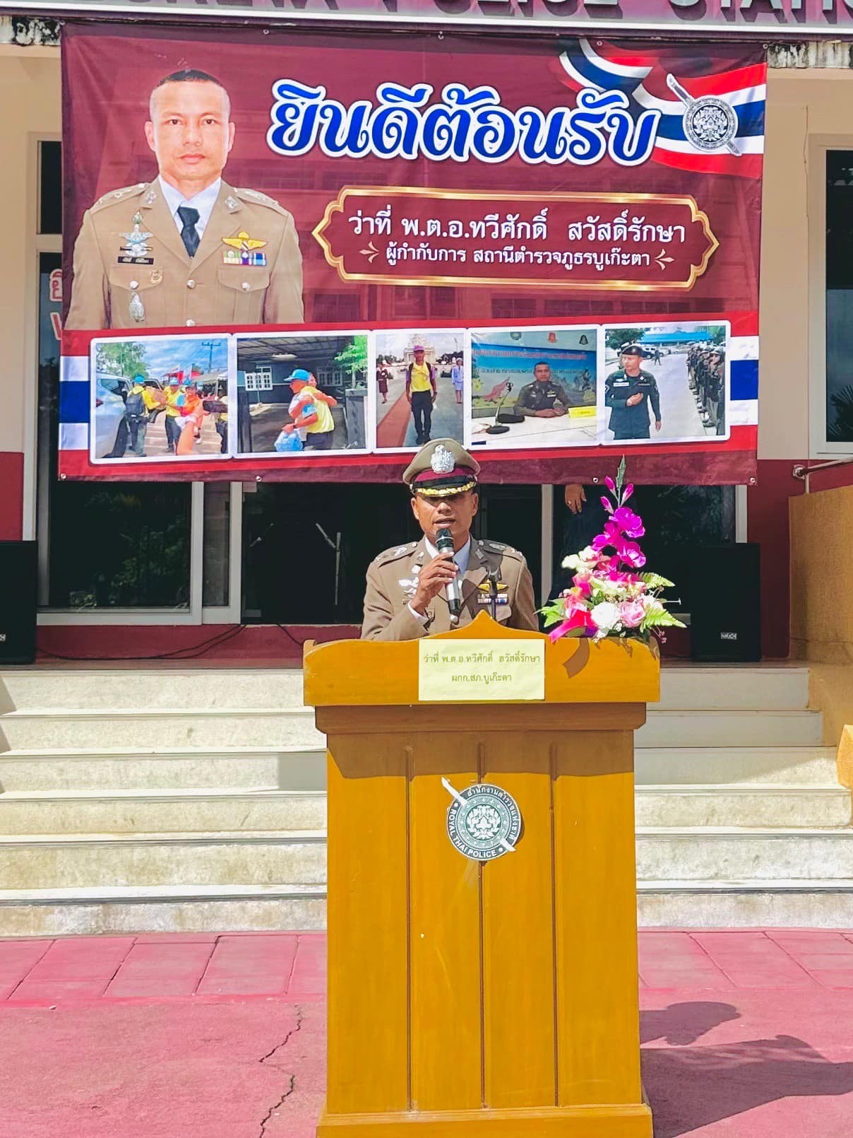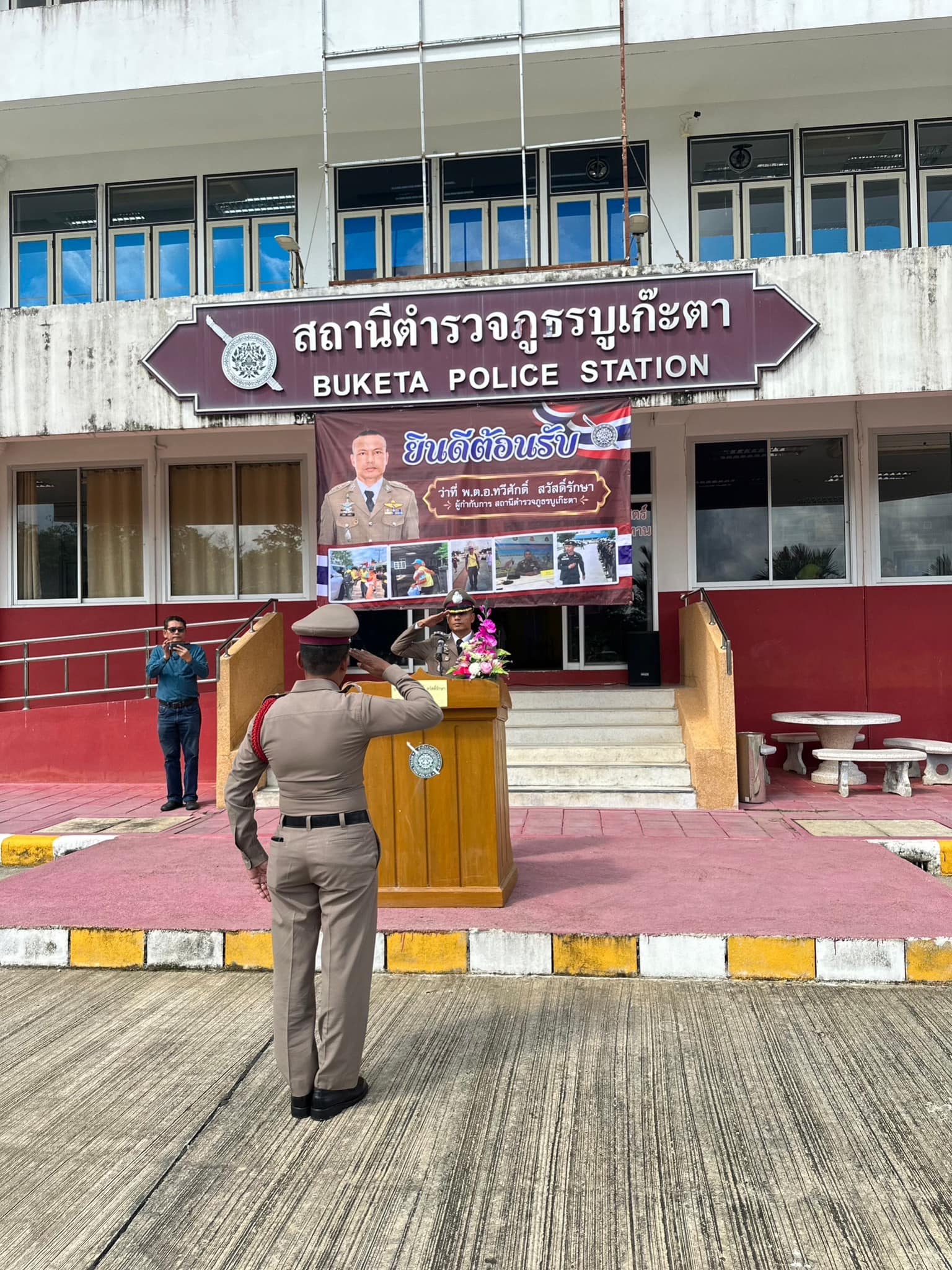 ร่วมให้การต้อนรับและแสดงความยินดีกับ ว่าที่ พ.ต.อ.ทวีศักดิ์ สวัสดิ์รักษา ผกก.สภ.บูเก๊ะตา เนื่องในโอกาสที่เดินทางมารับตำแหน่งใหม่ โดยมีหัวหน้าส่วนราชการ แขกผู้มีเกียรติ มาร่วมส่งและแสดงความยินดี บรรยากาศเต็มไปด้วยความอบอุ่น