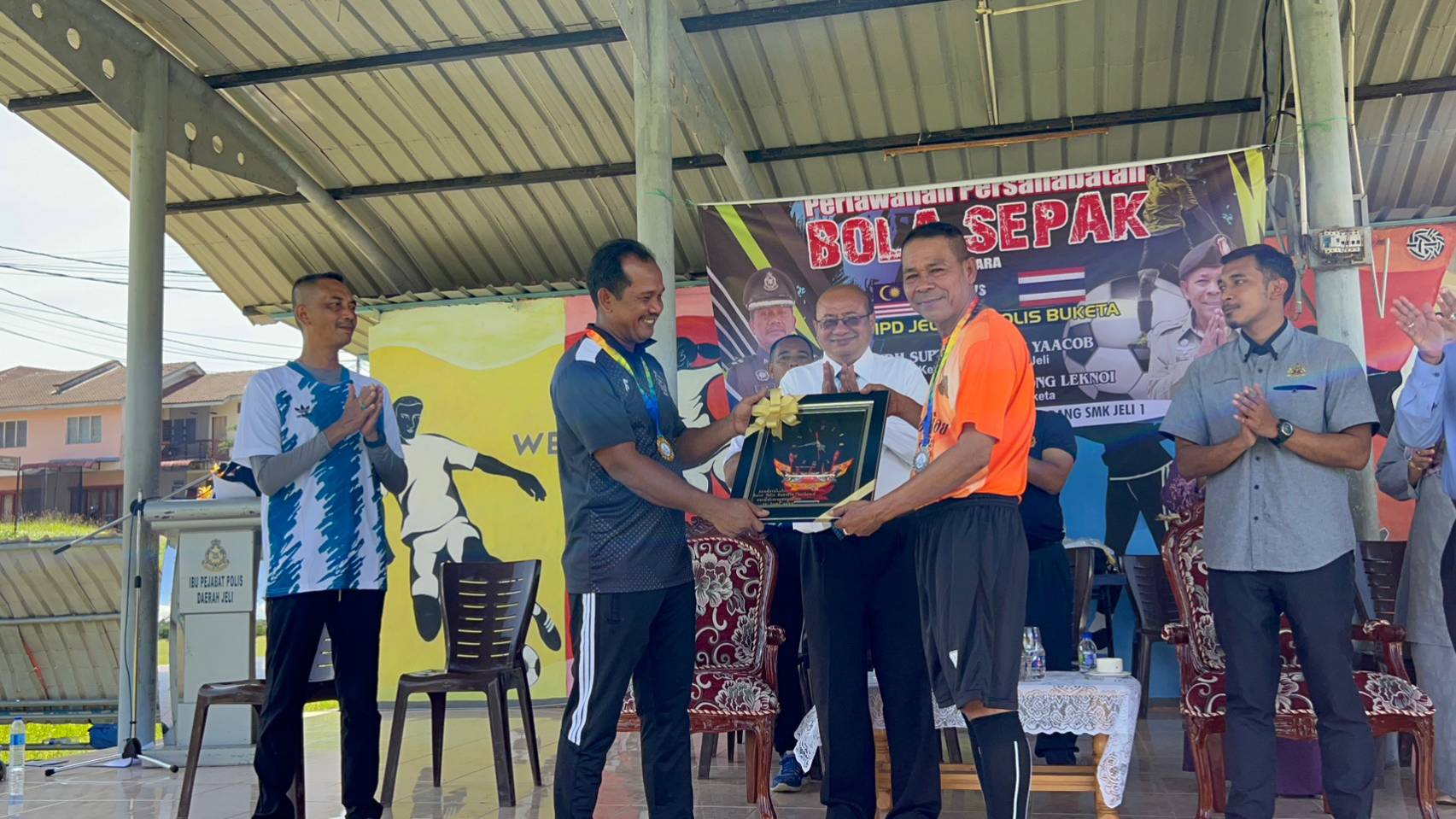 พ.ต.อ.ฉลอง เล็กน้อย (ผกก.สภ.บูเก๊ะตา) พร้อมข้าราชการตำรวจ สภ.บูเก๊ะตา ได้ร่วมกิจกรรมกีฬาสานสัมพันธ์ ระหว่างตำรวจไทย(สภ.บูเก๊ะตา)กับตำรวจมาเลเซีย(Jeli police)