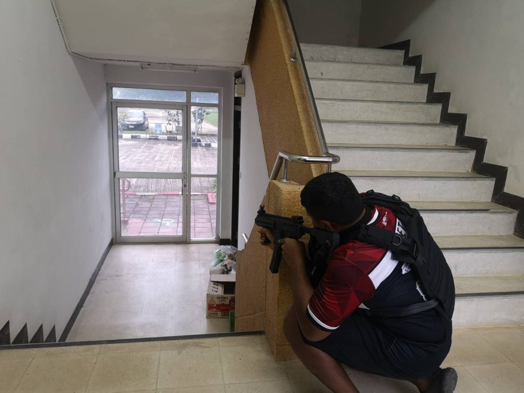 วันนี้ 29 ธ.ค.67 เวลา 18.00 น. ว่าที่ พ.ต.อ.ทวีศักดิ์ สวัสดิ์รักษา ผกก.สภ.บูเก๊ะตา พ.ต.ท.ซีระ อับดุลเลาะ สวป.สภ.บูเก๊ะตา พร้อมข้าราชการตำรวจในสังกัด สภ.บูเก๊ะตา ทำการซักซ้อมแผนเผชิญเหตุโดยสมมุติฐานมีคนร้ายไม่ทราบจำนวนใช้ปืนยิงโจมตีสถานีตำรวจและบ้านพักข้าราชการตำรวจ เมื่อเกิดเหตุตำรวจที่พักอาศัยได้เข้าประจำจุดแนวยิง มีความพร้อมในการตอบโต้คนร้ายได้อย่างทันท่วงที ซึ่งปฏิบัติตามแผนเผชิญเหตุที่วางไว้ในการซ้อมแผนเผชิญเหตุในครั้งนี้เพื่อให้ข้าราชการตำรวจมีความเข้าใจในการปฏิบัติและเมื่อมีสถานการณ์จริงสามารถปฏิบัติได้อย่างถูกต้อง