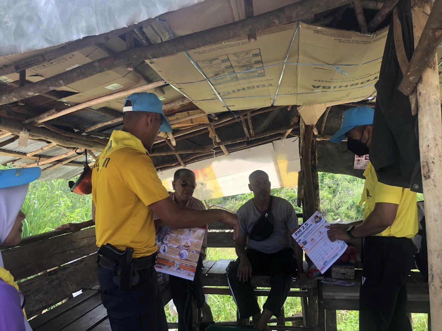 ภายใต้อำนวยการโดย พ.ต.อ.สิทธิพงษ์ หัสรังษี รอง ผบก.ภ.จว.นราธิวาส รรท.ผกก.สภ.บูเก๊ะตา มอบหมายให้ ร.ต.ท.สุริยัน หมานโส๊ะ รอง สว.(สส.)สภ.บูเก๊ะตา/หน.ชุด ตชส.สภ.บูเก๊ะตา พร้อมด้วย ข้าราชการตำรวจจิตอาสา สภ.บูเก๊ะตา และนักเรียนฝึกงานโรงเรียนเวียงสุวรรณวิทยาคม ลงพื้นที่ประชาสัมพันธ์ให้ประชาชนรับทราบถึงการป้องกัน และแก้ไขปัญหาฝุ่นละอองขนาดเล็ก (PM2.5) ที่มีสาเหตุมาจากการลักลอบเผาป่า เผาขยะ และพืชไร่ต่างๆ ทำให้ควันฝุ่นละอองกระจายตัวในระดับต่ำ เกิดการสะสมในชั้นบรรยากาศเพิ่มสูงขึ้น ทำให้ประชาชนในพื้นที่ได้รับผลกระทบต่อการดำรงชีพ และสุขภาพของประชาชน