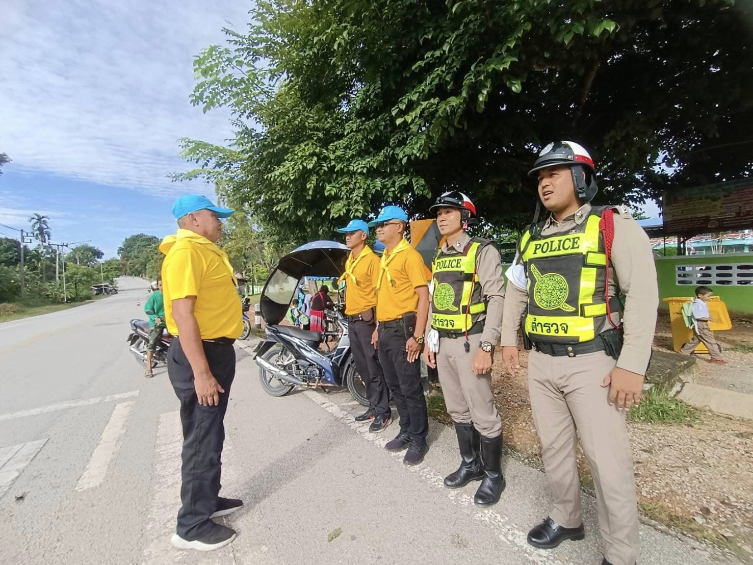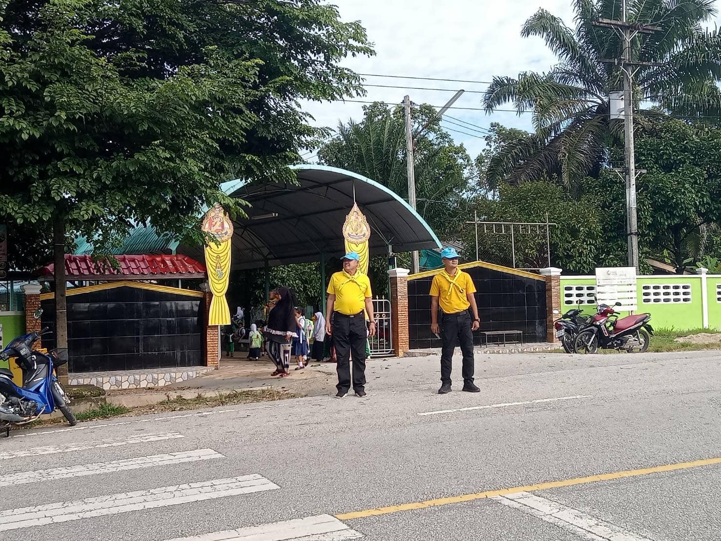 วันที่ 22 สิงหาคม 2566 เวลา 07.30 น.ภายใต้อำนวยการโดย พ.ต.อ.ฉลอง เล็กน้อย ผกก.สภ.บูเก๊ะตา มอบหมายให้ ร.ต.ท.สุริยัน หมานโส๊ะ หน.ชมส.ฯ พร้อมด้วย ชป.จิตอาสา ชป.จราจร ออกดำเนินโครงการจิตอาสาอำนวยความสะดวกด้านการจราจรให้กับผู้ปกครองนักเรียนที่มาส่งบุตรหลานบริเวณหน้าโรงเรียน และดูแลความปลอดภัยให้กับคณะครู