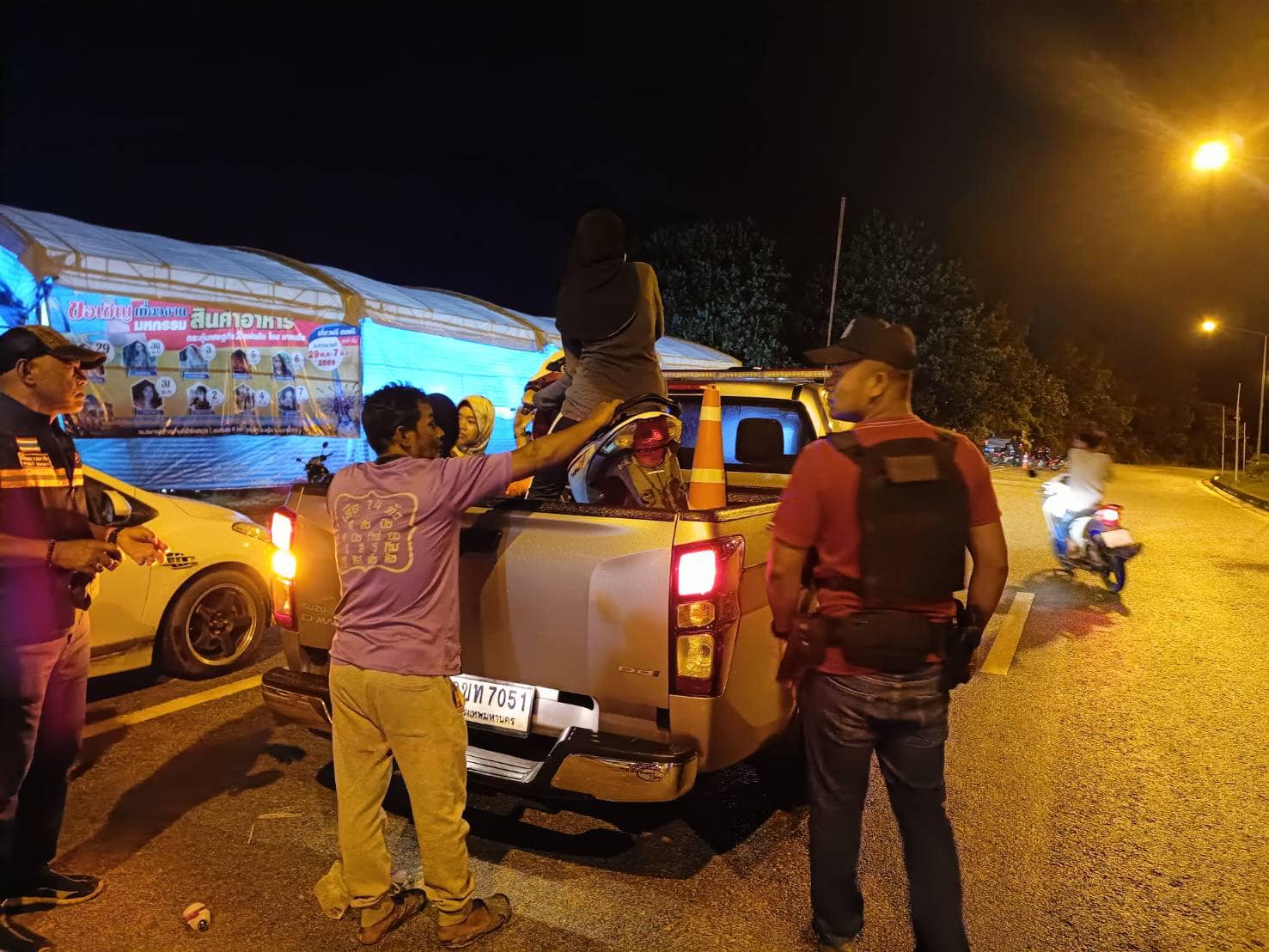 วันที่ 5 มิถุนายน 2566 เวลา 01.15 น. ภายใต้อำนวยการโดย พ.ต.อ.ฉลอง เล็กน้อย ผกก.สภ.บูเก๊ะตา มอบหมายให้ ร.ต.อ.มานะ นามเนียม ร้อยเวร 20 พร้อม ชป.จู่โจม ออกปฎิบัติหน้าที่ให้ความช่วยเหลือชาวบ้านในพื้นที่ ประสบปัญหารถจักรยานยนต์สวิทช์กุญแจเสียบิดไม่ได้ จึงได้นำรถจักรยานยนต์คันดังกล่าวบรรทุกท้ายกระบะรถยนต์สายตรวจเพื่อนำไปส่งถึงบ้านอย่างปลอดภัย ณ บริเวณจัดงานหน้าเทศบาลตำบลบูเก๊ะตา ต.โละจูด อ.แว้ง จว.นราธิวาส