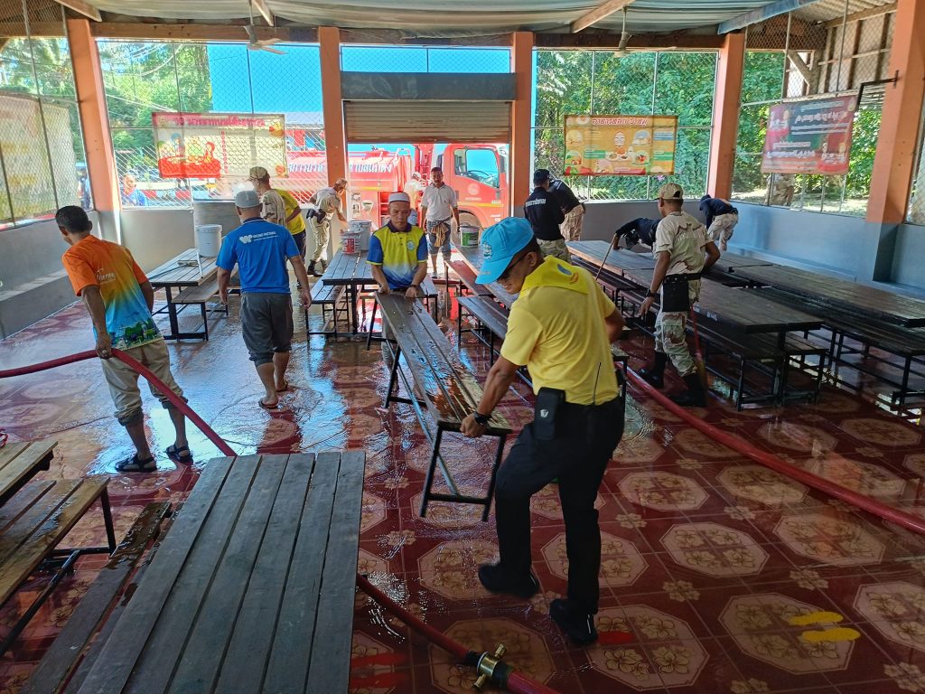 เนื่องจากช่วงเย็น วันที่ 6 พฤศจิกายน 2567 ที่ผ่านมามีฝนตกหนักในพื้นที่ ทำให้น้ำป่าไหลหลากเข้าสู่บริเวณโรงเรียนบ้านยะหอ และไหลเข้าสู่บริเวณห้องเรียน ซึ่งระดับน้ำสูงประมาณ 50-80 เซนติเมตร โดยมีนักการภารโรง รปภ.รร.ฯ และผู้ปกครองได้ช่วยกันยกของขึ้นที่สูง ทาง สภ.บูเก๊ะตา ซึ่งได้รับประสานจากท่าน ปาเดอลี เจ๊ะอาลี ผู้อำนวยการโรงเรียนบ้านยะหอ และ กต.ตร.สภ.บูเก๊ะตา ผ่านช่องทางไลน์ กต.ตร.สภ.บูเก๊ะตา จึงได้ลงพื้นที่ร่วมกันทำความสะอาด