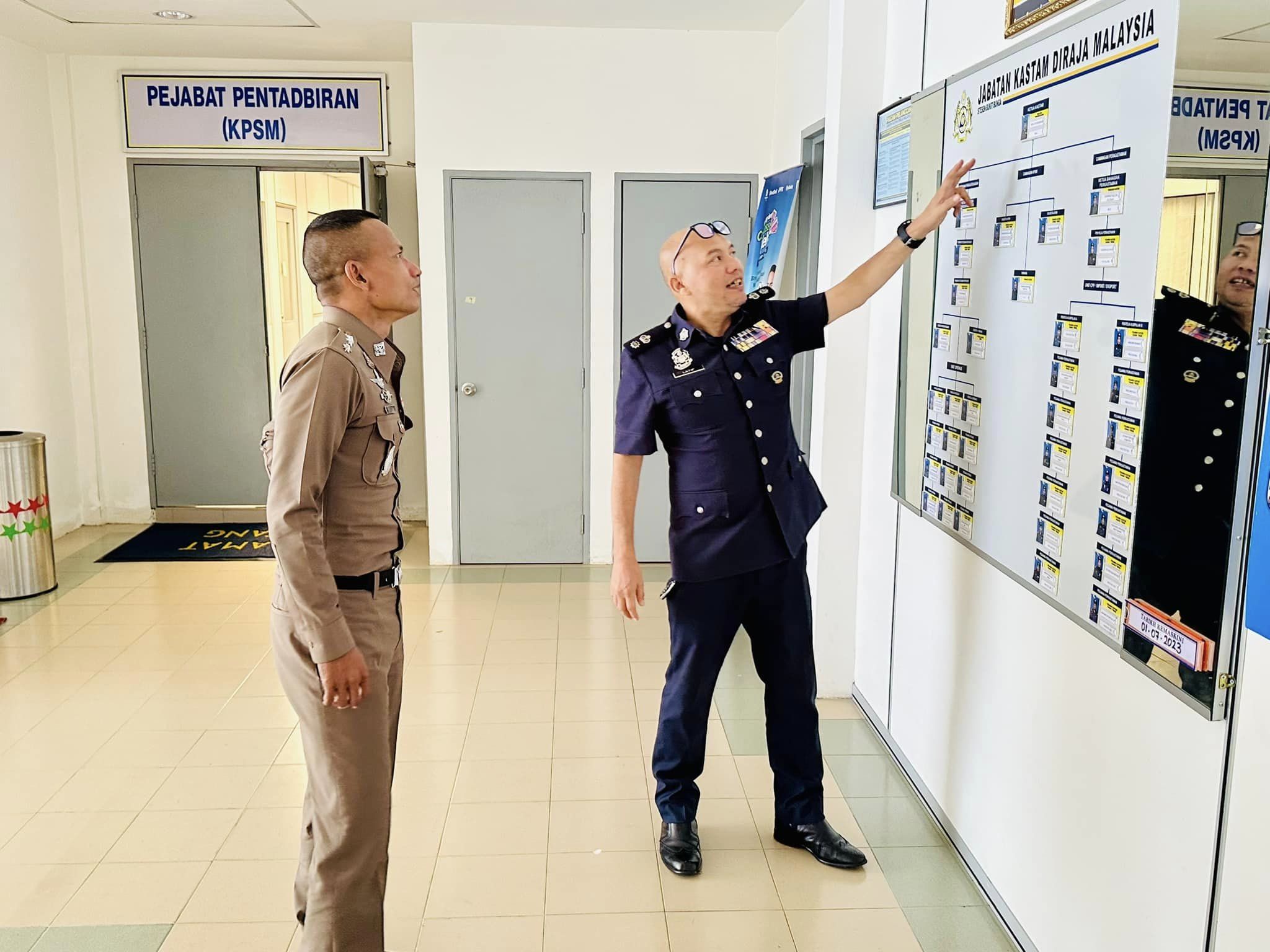 ว่าที่ พ.ต.อ.ทวีศักดิ์ สวัสดิ์รักษา ผกก.สภ.บูเก๊ะตา ได้แนะนำตัวให้กับ MR. Abdul Latif Bin Deraman หัวหน้าศุลกากร ICQS บูเก๊ะบูงอ รัฐกลันตัน เนื่องในโอกาสการมารับตำแหน่งผู้กำกับสถานีตำรวจภูธรบูเก๊ะตา และพร้อมทำงานประสานงานระหว่างประเทศ ไปด้วยกันอย่างมีประสิทธิภาพ