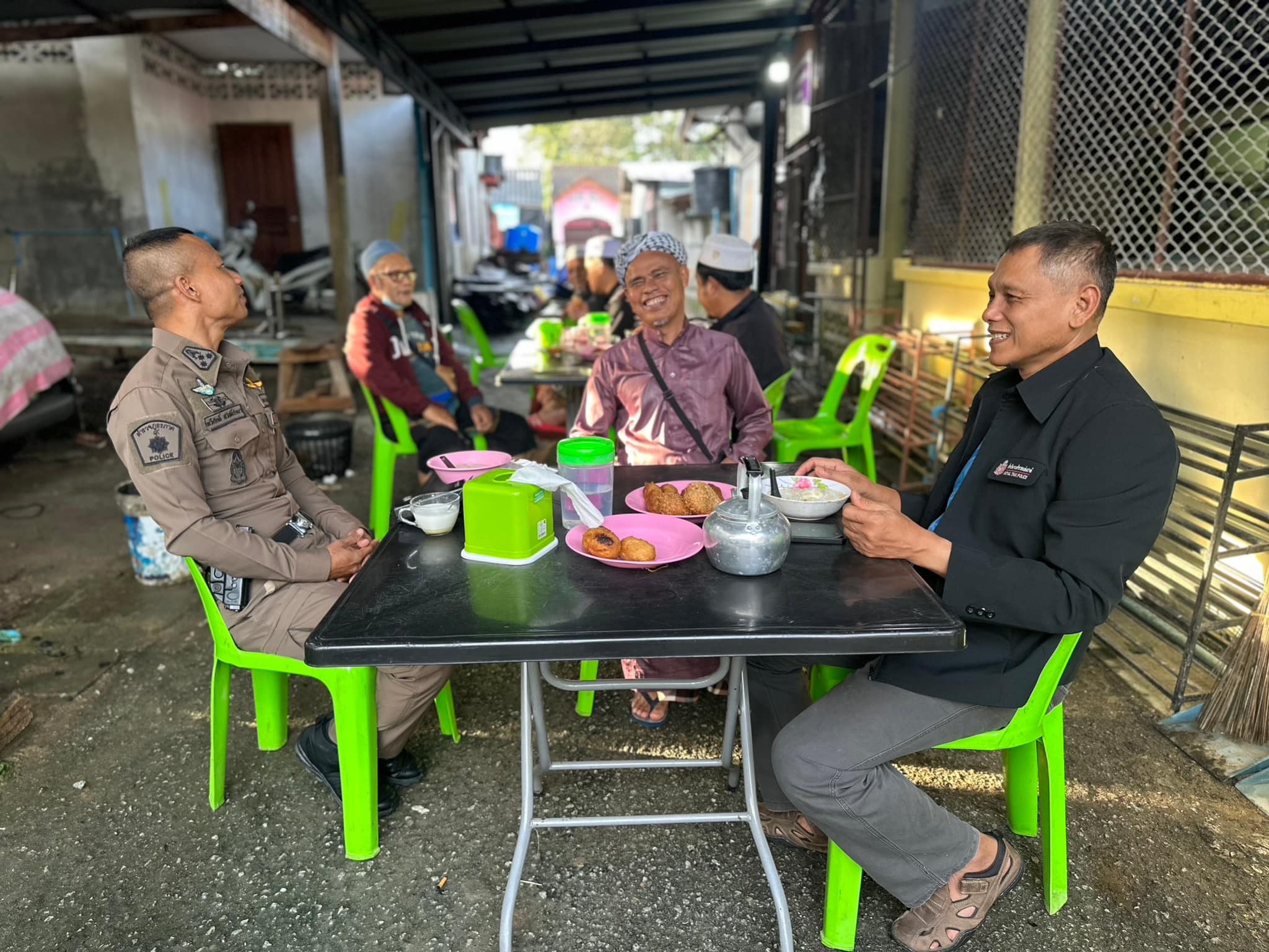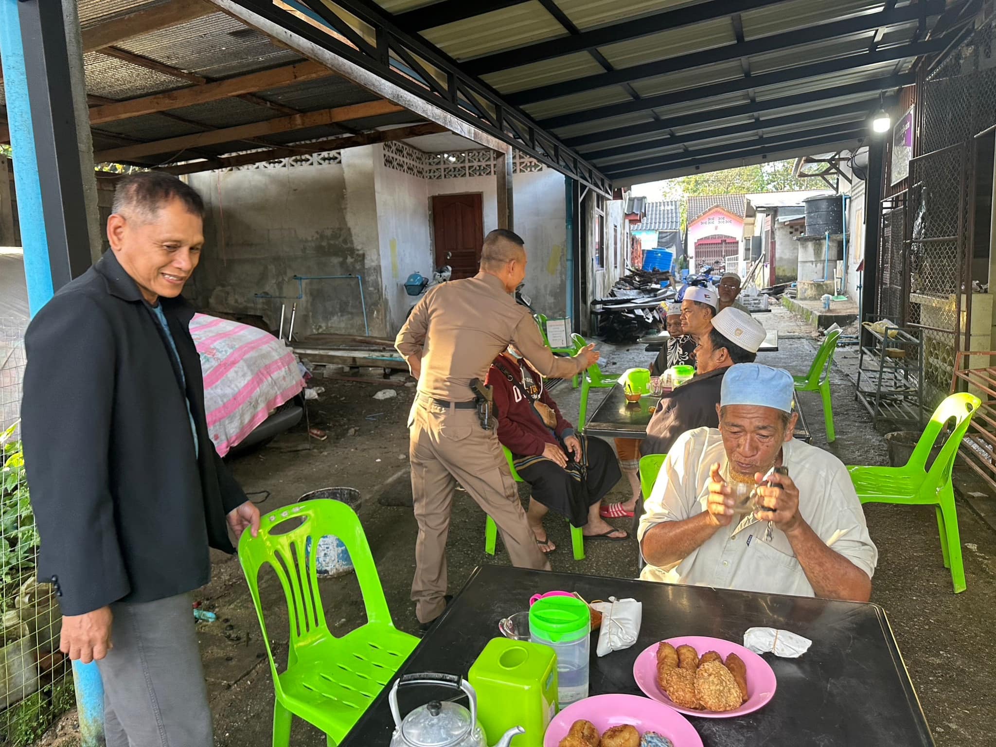 ว่าที่ พ.ต.อ.ทวีศักดิ์ สวัสดิ์รักษา ผกก.สภ.บูเก๊ะตา พร้อมด้วย พ.ต.ท.สุพจน์ เรืองรุ่งโรจน์ รอง ผกก.ป.สภ.บูเก๊ะตา พ.ต.ท.พล สังข์แก้ว รอง ผกก.(สอบสวน)สภ.บูเก๊ะตา ลงพื้นที่พบปะเยี่ยมเยียนพี่น้องประชาชนบริเวณร้านน้ำชา ร่วมเสวนากาแฟยามเช้า เพื่อหารือแลกเปลี่ยนความคิดเห็นซึ่งกันและกัน และสร้างความสัมพันธ์อันดีระหว่างเจ้าหน้าที่รัฐกับประชาชนในพื้นที่ พร้อมประชาสัมพันธ์หากมีเหตุด่วน เหตุร้ายให้รีบแจ้งเจ้าหน้าที่ทันที