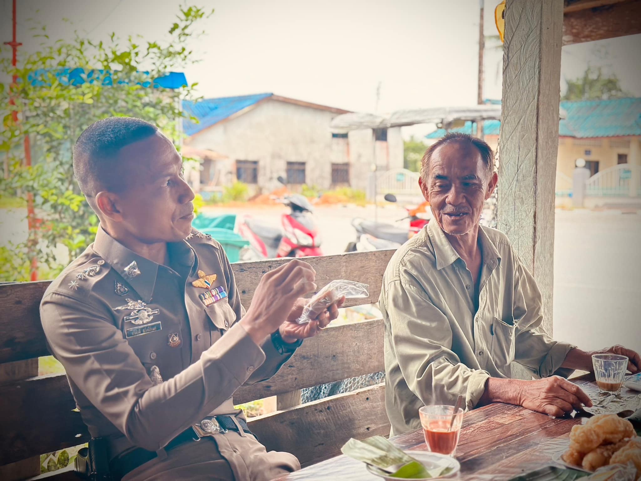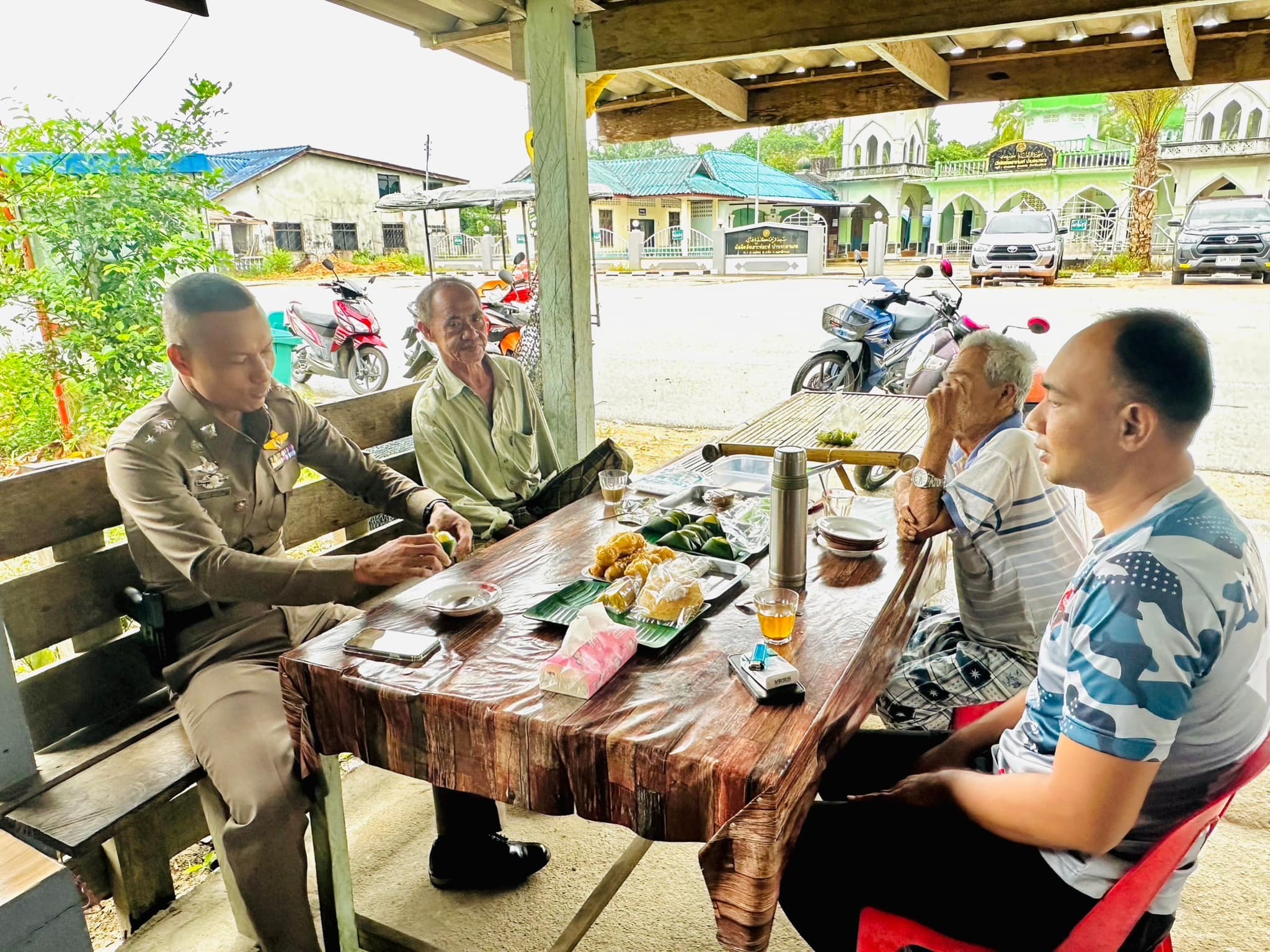 ว่าที่ พ.ต.อ.ทวีศักดิ์ สวัสดิ์รักษา ผกก.สภ.บูเก๊ะตา ลงพื้นที่พบปะเยี่ยมเยียนพี่น้องประชาชนบริเวณร้านน้ำชา ร่วมเสวนากาแฟยามเช้า เพื่อหารือแลกเปลี่ยนความคิดเห็นซึ่งกันและกัน และสร้างความสัมพันธ์อันดีกับพี่น้องประชาชนในพื้นที่ พร้อมประชาสัมพันธ์หากมีเหตุด่วน เหตุร้ายให้รีบแจ้งเจ้าหน้าที่ทันที