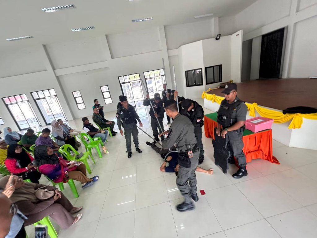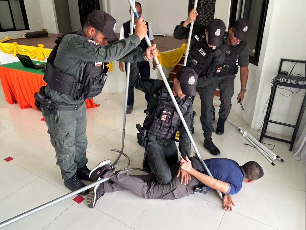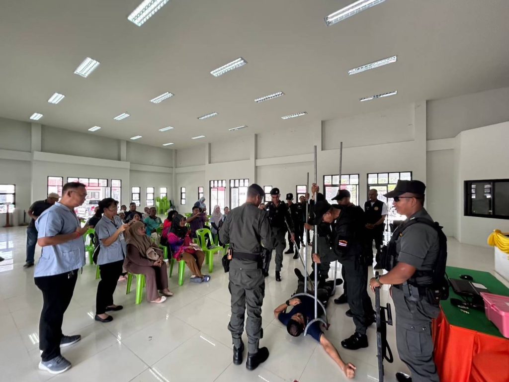 สวป.สภ.บูเก๊ะตา พร้อมด้วยร้อยเวร 20 และชป.จู่โจม ได้สาธิตการฝึกซักซ้อมแผนเผชิญเหตุ เพื่อเข้าระงับเหตุบุคคลคลุ้มคลั่งด้วยการใช้ไม้ง่ามในการระงับเหตุ โดยได้ถ่ายทอดความรู้แก่เจ้าหน้าที่ในพื้นที่ ณ หอประชุม ทต.บูเก๊ะตา เพื่อเป็นวิทยาทานแก่ผู้ปฏิบัติให้เกิดความเข้าใจในการปฏิบัติเมื่อเกิดสถานการณ์จริง และสามารถปฏิบัติได้อย่างถูกต้องตามยุทธวิธี