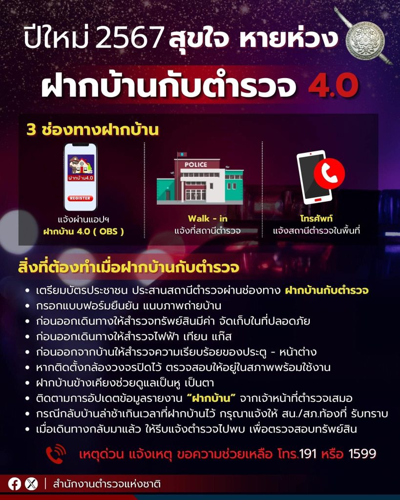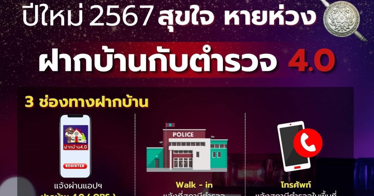 ฝากบ้านกับตำรวจ 4.0 ปีใหม่ 2567 สุขใจ หายห่วง ฝากบ้านไว้ให้ตำรวจช่วยดูแล