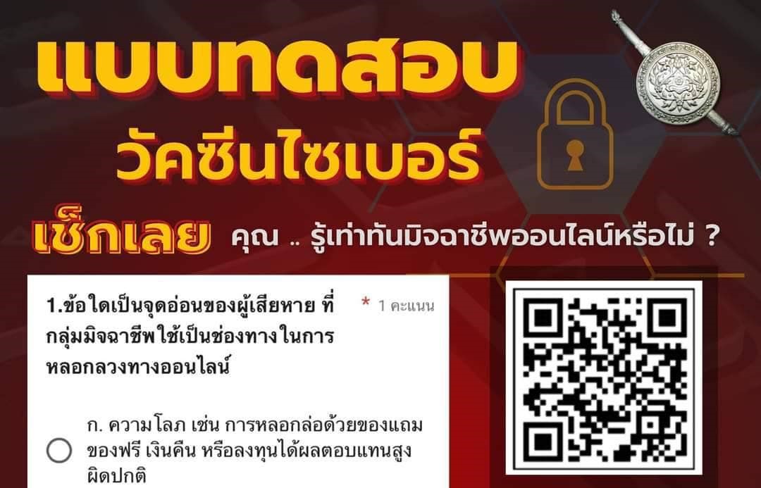 เช็คเลย…คุณรู้เท่าทันมิจฉาชีพออนไลน์หรือไม่ สแกนคิวอาร์โค้ดด้านล่างได้เลย จำนวนคนดู: 2