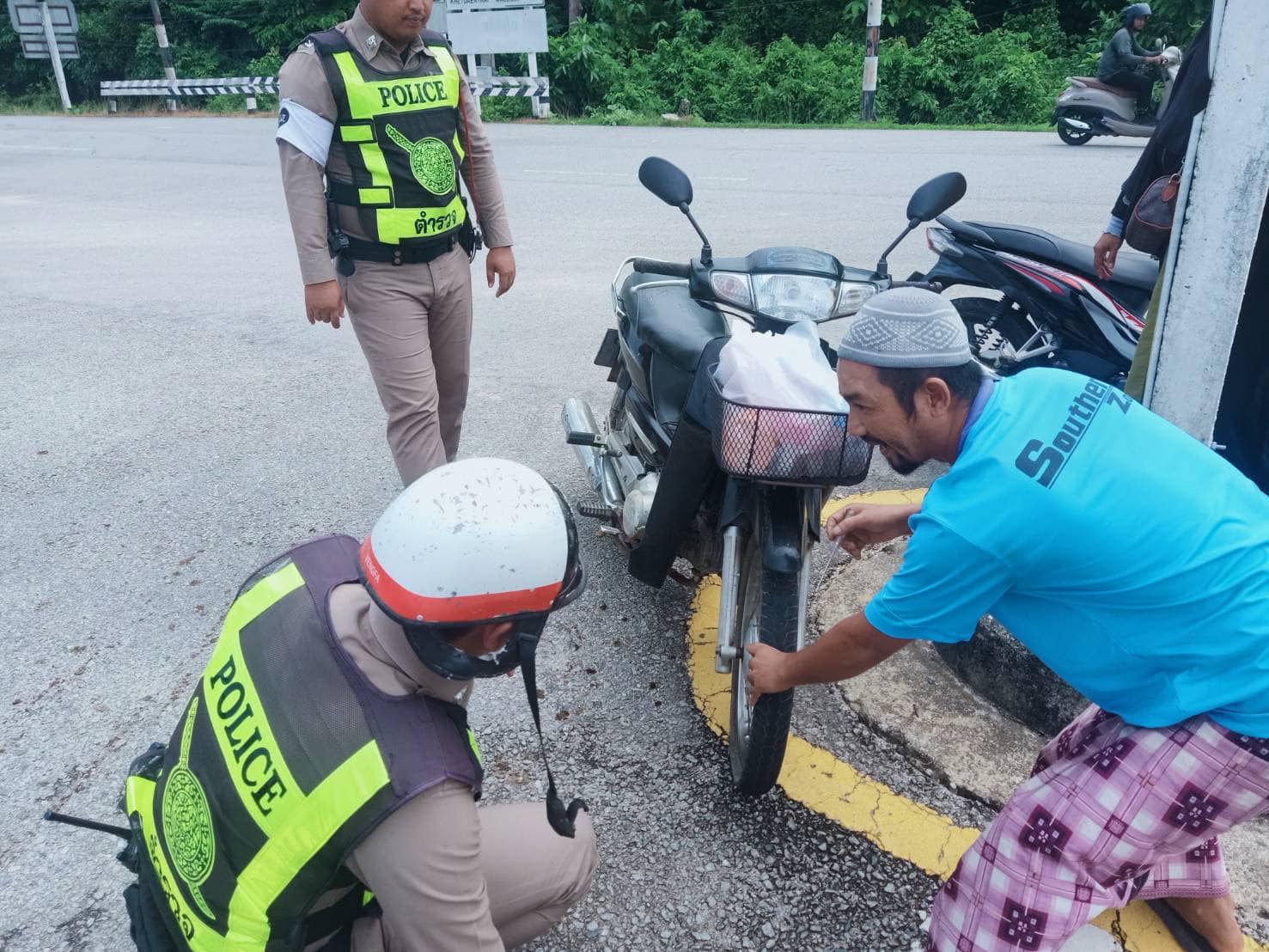 ชุดปฎิบัติการตำรวจจราจร ออกตรวจสอบและให้การช่วยเหลือประชาชน เนื่องจากรถจักรยานยนต์เครื่องยนต์ขัดข้อง ดับกลางทาง จึงได้ให้การช่วยเหลือเบื้องต้น ณ บริเวณถนนสามแยกเทศบาลตำบลบูเก๊ะตา