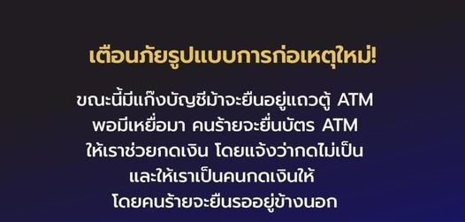 เตือนภัย รูปแบบใหม่ ก่อนใจดี มีน้ำใจ เอะใจสักนิด ท่านอาจตกเป็นผู้ช่วยมิจฉาชีพ โ