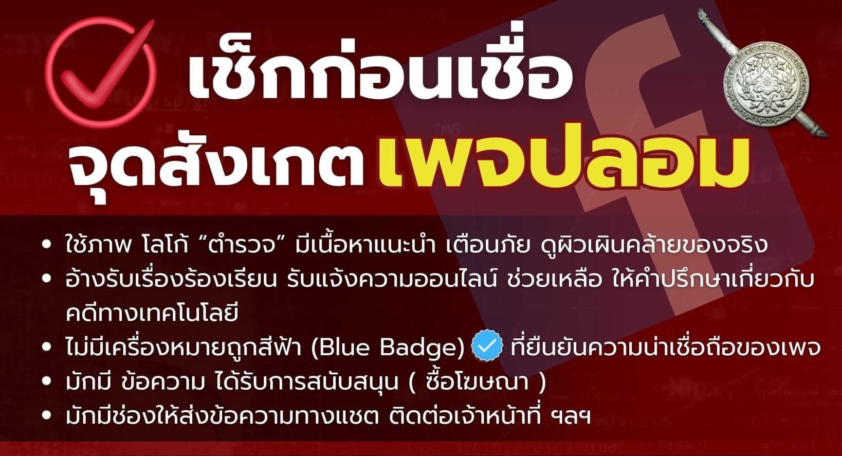 เช็กก่อนเชื่อ!! แนะนำจุดสังเกตเพจเฟซบุ๊กปลอมขณะนี้พบว่ามีมิจฉาชีพสร้างเพจเฟซบุ๊กปลอมจำนวนมาก โดยใช้ภ
