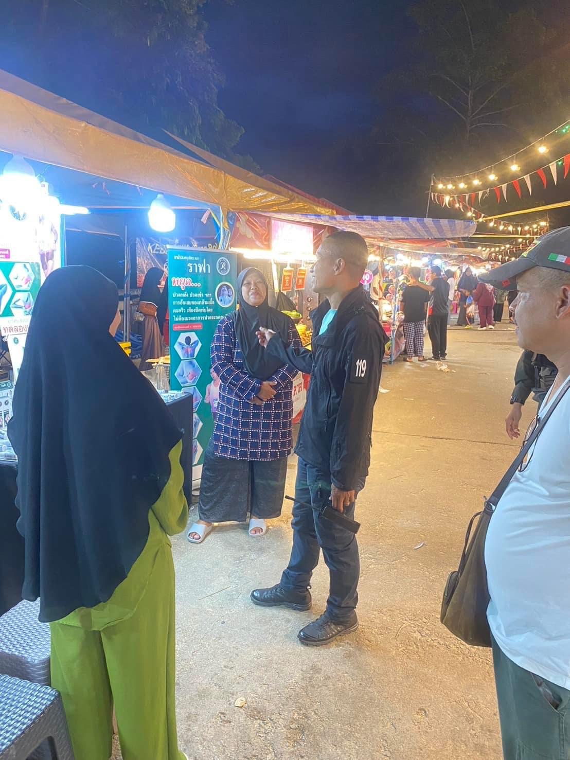 ว่าที่ พ.ต.อ.ทวีศักดิ์ สวัสดิ์รักษา ผกก.สภ.บูเก๊ะตา ลงพื้นที่เยี่ยมเยียนพบปะพูดคุยกับพ่อค้า แม่ค้า และพี่น้องประชาชนในพื้นที่ ที่มาจับจ่ายซื้อของในบริเวณงาน Halal Food Fest เพื่อประชาสัมพันธ์ข่าวสารต่างๆ เมื่อมีสิ่งผิดปกติ ให้รีบแจ้งเจ้าหน้าที่เข้ามาตรวจสอบได้ตลอดเวลา และเพื่อสร้างความมั่นใจให้กับพี่น้องประชาชนในการดูแลความปลอดภัยภายในพื้นที่